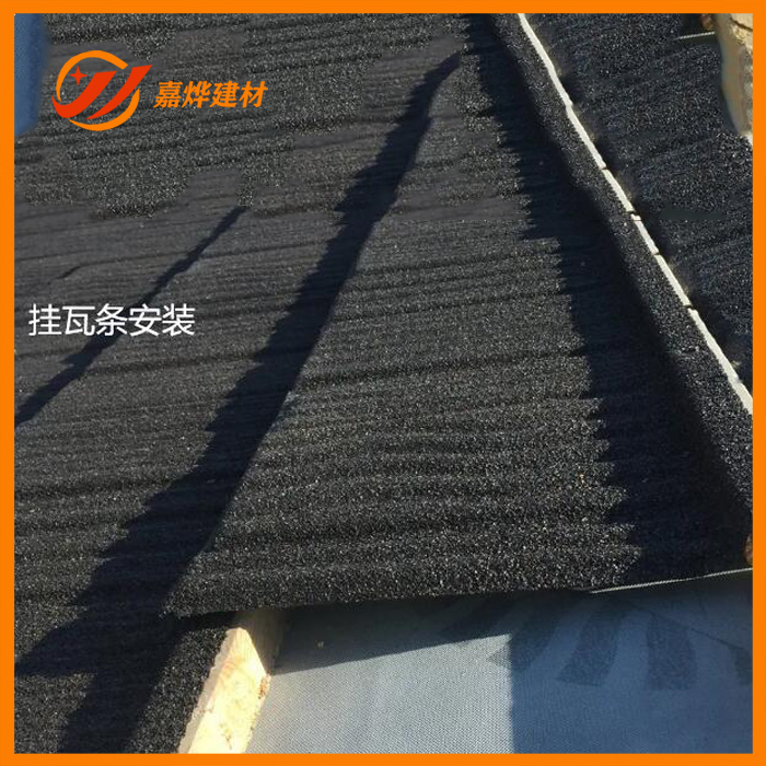 板條安裝“即屋頂材料是連接在2x2木板條(鍍鋅管)網(wǎng)格頂部。用順?biāo)畻l和掛瓦條作為作為瓦片的固定物,是當(dāng)前國(guó)內(nèi)金屬瓦主流的安裝方式。