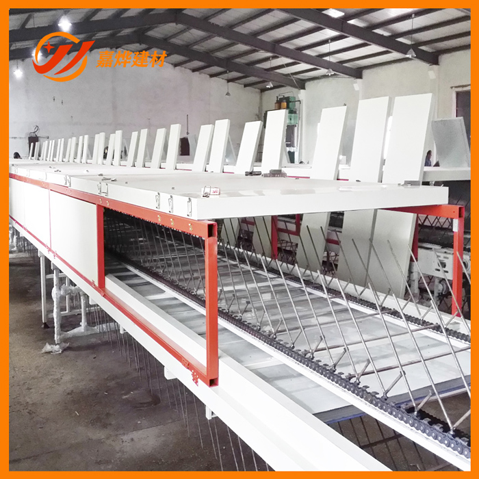 1.烘干道容量加大節(jié)約能源提高速度 普通烘烤方式瓦片長(zhǎng)方向入,而我們現(xiàn)在采用橫向入烘道而且傾斜入烘道這樣增加了烘烤數(shù)量,以七個(gè)波的瓦片計(jì)算橫向入烘干道可容納5片長(zhǎng)方向入可容納兩片,在同等個(gè)速度的情況向我們的瓦片在烘干道呆的時(shí)間更長(zhǎng),烘干更透徹。